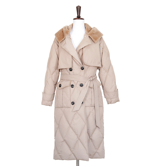 女式冬大衣腰带双排扣时尚皮草领设计羽绒服长款服装宽松保暖