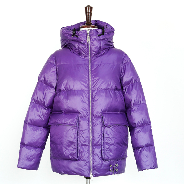 女式冬大衣时尚羽绒服休闲极简风格,纯紫色带帽棉布服装